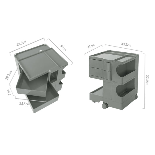 ArtissIn Bedside Table Side Tables Nightstand Organizer Replica Boby Trolley 3Tier Grey