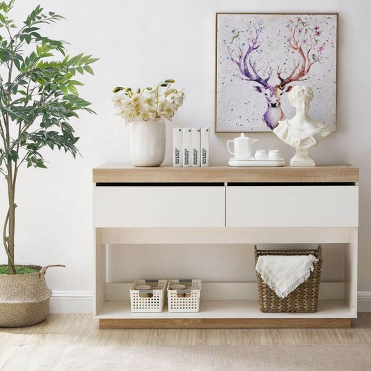 Lamp Table Open Storage Solid Wooden Frame in Classic Oak Colour