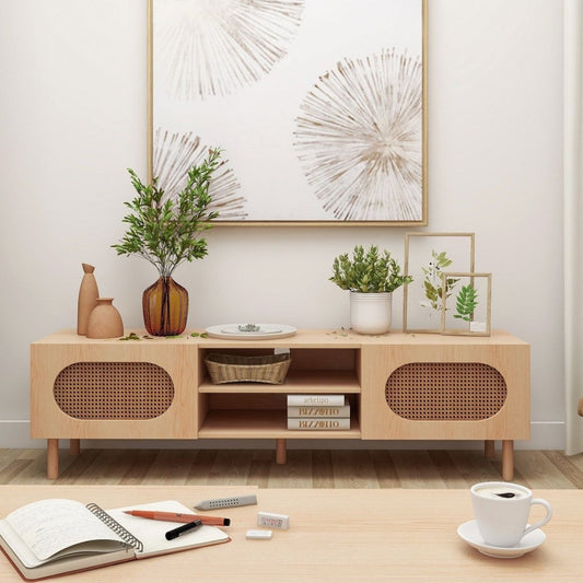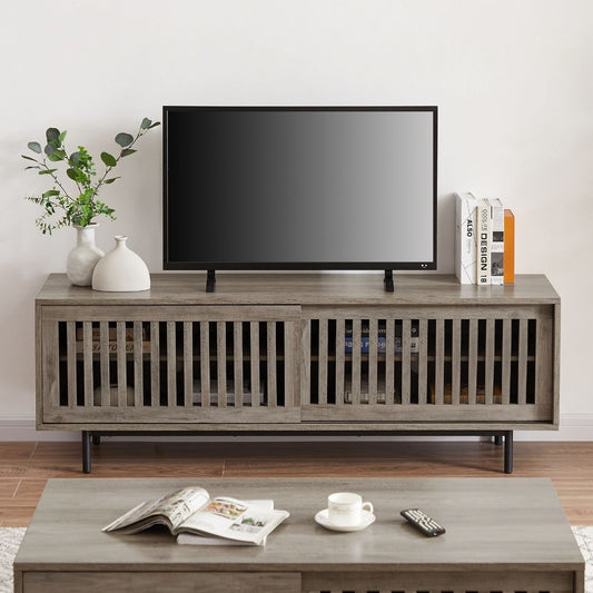 TV Cabinet with 2 Storage Drawers Cabinet Solid Acacia Wooden Entertainment Unit in Sliver Bruch Colour