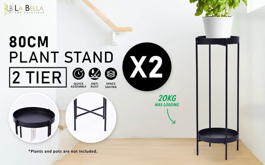 La Bella 2 Set 80cm Black Plant Stand Planter Shelf Rack 2 Tier Steel
