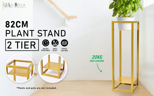 La Bella 82cm Gold Plant Stand Planter Shelf Rack 2 Tier Steel