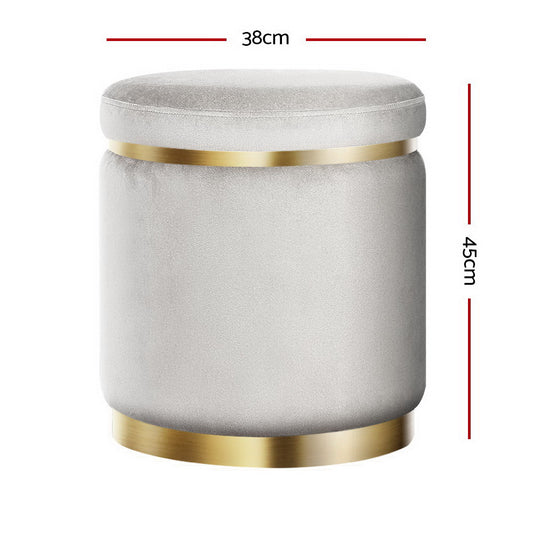 Artiss Round Velvet Ottoman Foot Stool Foot Rest Pouffe Pouf Padded Seat Grey