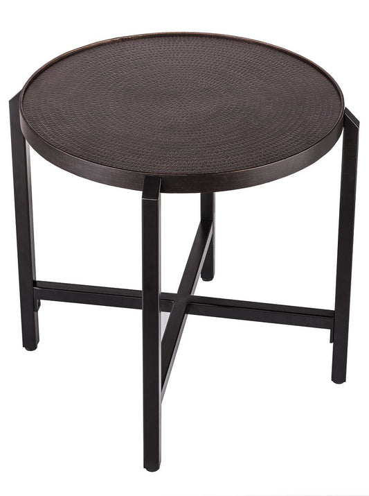 Black Round Iron Side Table with Cross Legs and Copper Finish Top
