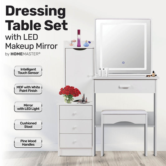 Home Master Dressing Table Set & Stool Touch Sensor Mirror Stylish Design