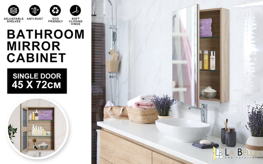 La Bella Oak Bathroom Mirror Cabinet Wall Single Door Shaving Storage 45 x 72 cm