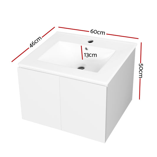 Cefito Vanity Unit Ceramic Basin Cabinet Storage Bathroom Wall Mounted 600mm White