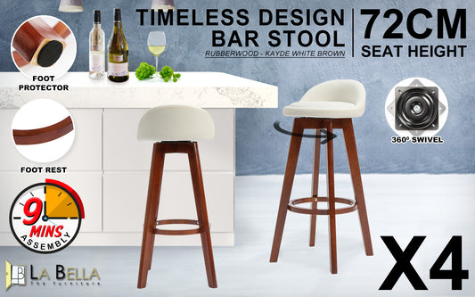La Bella 4 Set 72cm White Brown Wooden Bar Stool Kayde Leather