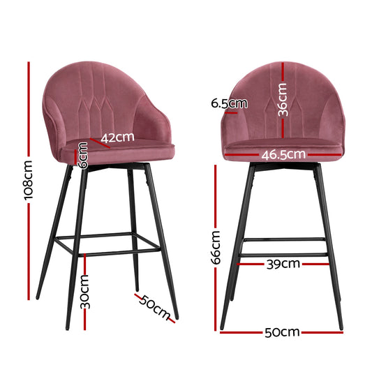 Artiss Set of 2 Bar Stools Kitchen Stool Dining Chairs Velvet Chair Barstool Pink Mesial