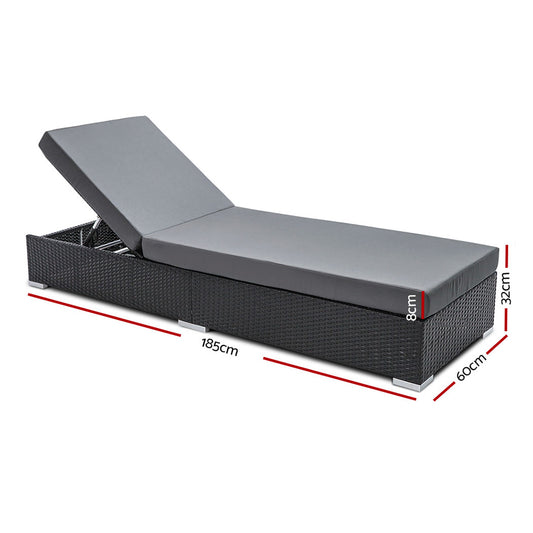 Gardeon Outdoor Sun Lounge Wicker Lounger Setting Day Bed Chair Pool Furniture Rattan Sofa Cushion Garden Patio Grey Black