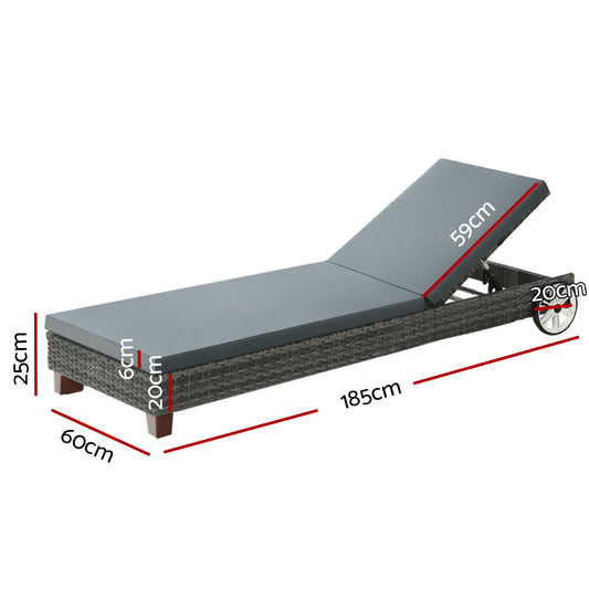 Gardeon Sun Lounge Wicker Lounger Day Bed Wheel Patio Outdoor Furniture Setting
