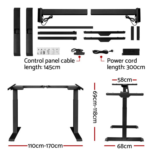 Standing Desk Height Adjustable Sit Stand Motorised Black Dual Motors Frame 120cm White Top