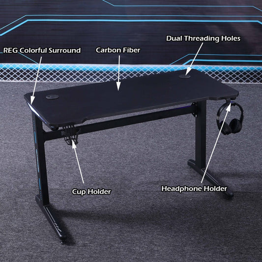 RGB Gaming Desk Home Office Carbon Fiber Led Lights Game Racer Computer PC Table Y-Shaped Black New 120cm