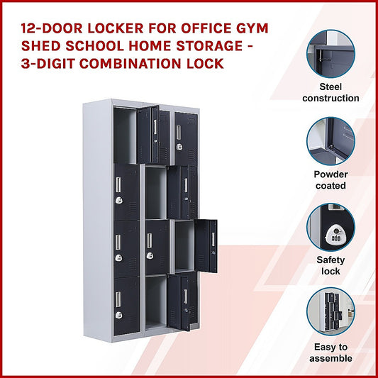 12-Door Locker for Office Gym Shed School Home Storage - 3-Digit Combination Lock