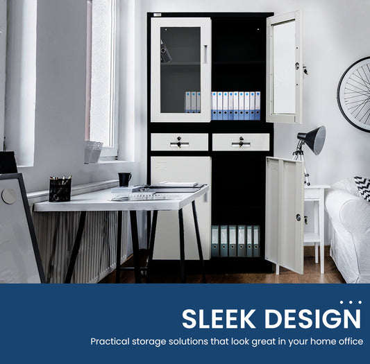 FORTIA Stationery Cabinet Office Home Storage Metal Lockable 4 Door Cupboard Drawers