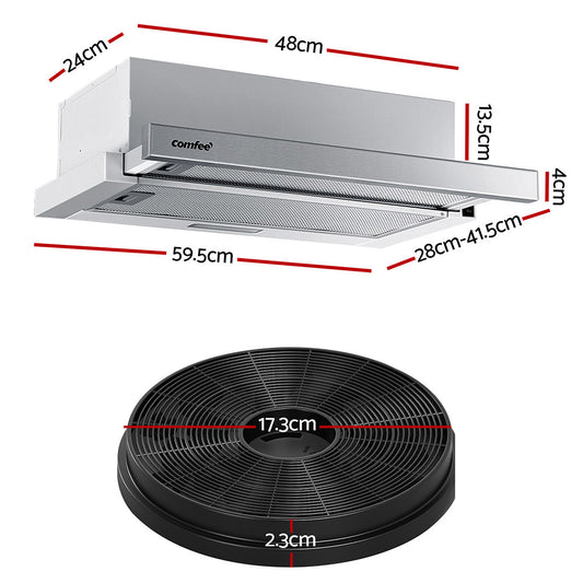 Comfee Rangehood 600mm Slide Out Stainless Steel Canopy Filter Replacement 2PCS