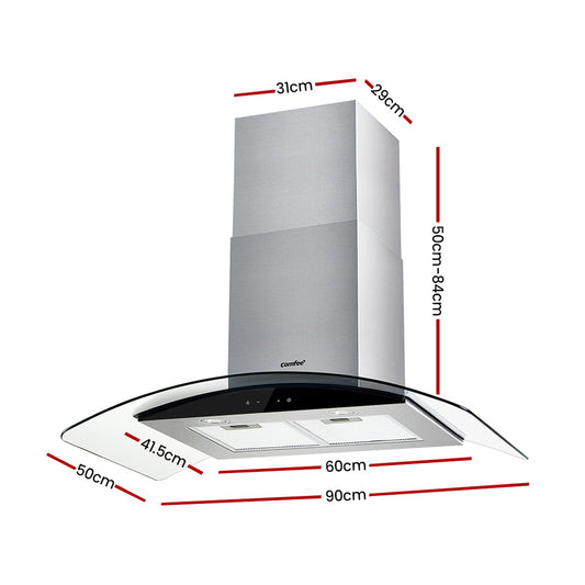 Comfee Rangehood 900mm Range Hood Stainless Steel LED Glass Home Kitchen Canopy