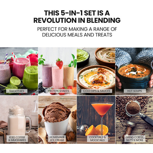 POLYCOOL 1000W 5in1 Vacuum Blender, 700ml Capacity, With Heating Jug and Grinder Cup