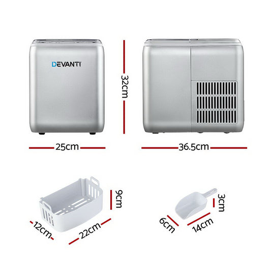 DEVANTi 3.2L Portable Ice Cube Maker Cold Commercial Machine Stainless Steel
