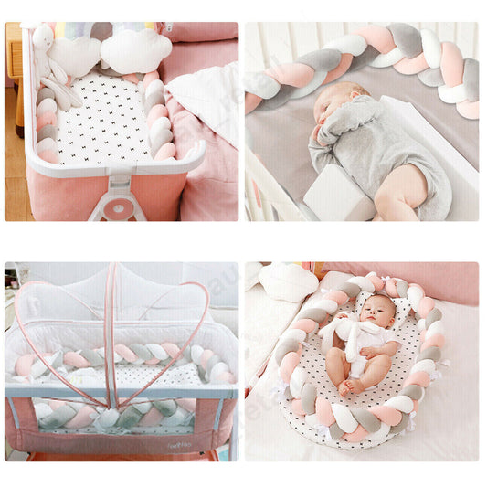 4M Kid Cot Bumper Braid Pillow Nursery Newborn Crib Bed Padded Protector Decor Gray+White+Pink