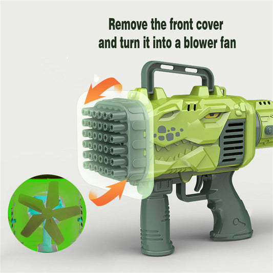 Bubblerainbow Dinosaur Bazooka Bubble Gun 64-Hole Fully Automatic Rechargeable Bubble Machine