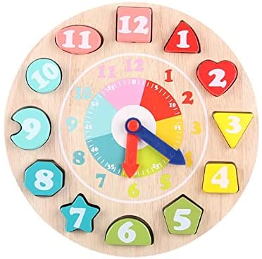 Wooden Shape Color Sorting Clock for Teaching Time Number for Kids (Montessori Early Learning Educational)