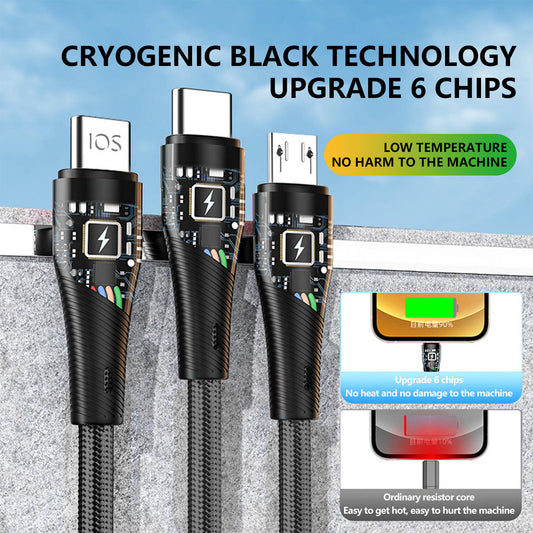Mobax Nylon Woven 100W Super Fast Charging 3-in-1 USB Charger Charging Cable Black