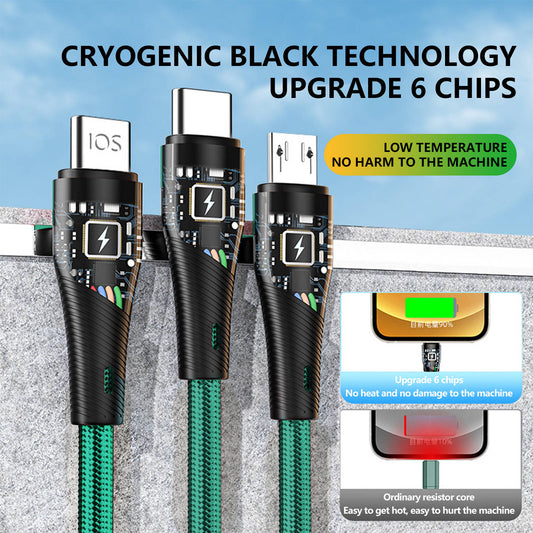 Mobax Nylon Woven 100W Super Fast Charging 3-in-1 USB Charger Charging Cable Green
