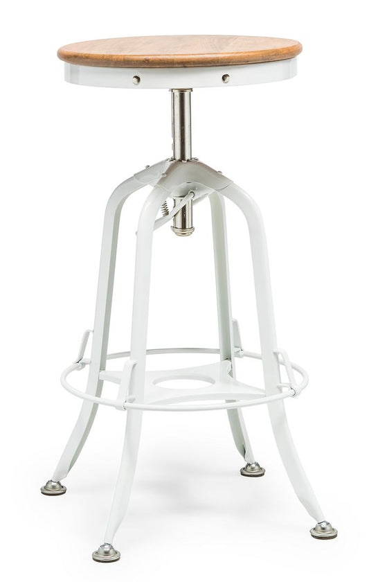 White Bar Stool Hamptons Style Height Adjustable and Swivel with Natural Wood Top