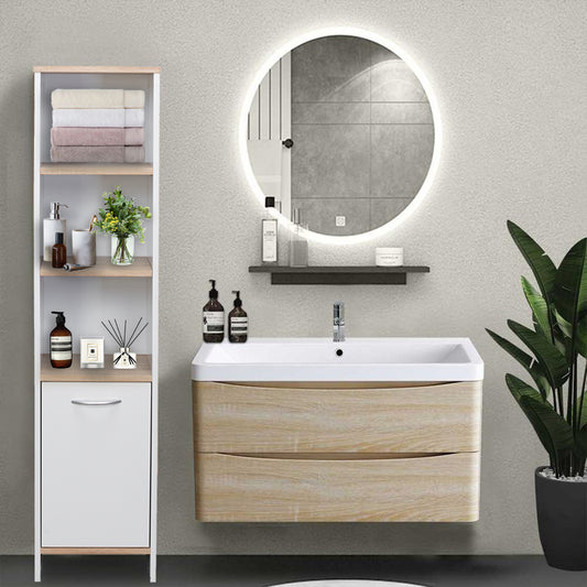 Alto Bathroom Tallboy Narrow High Cabinet With 1 Doors/3 Shelves - Oak/White