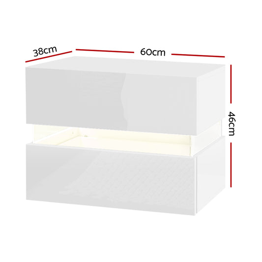Artiss Bedside Table 2 Drawers RGB LED Side Nightstand High Gloss Cabinet White