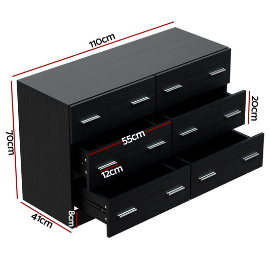 Artiss 6 Chest of Drawers Cabinet Dresser Table Tallboy Lowboy Storage Black