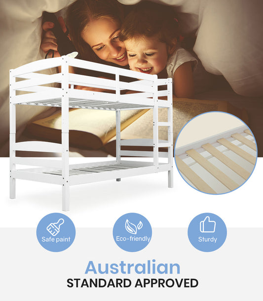 Kingston Slumber Wooden Kids Bunk Bed Frame, with Modular Design that can convert to 2 Single, White