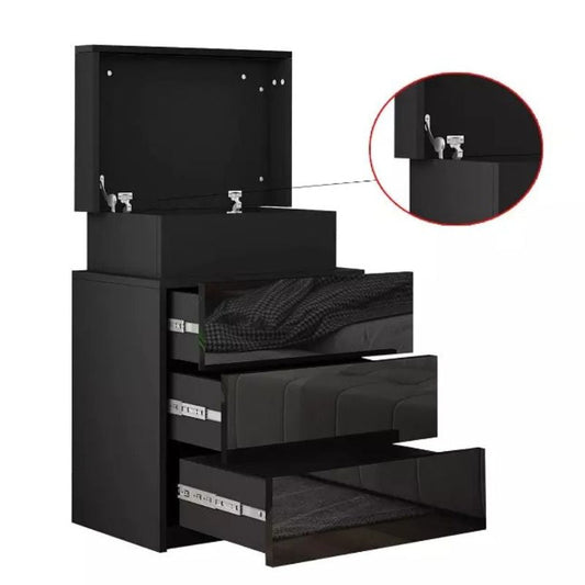 LED Bedside Table High Gloss Nightstand Cabinet with 3-Drawers Black