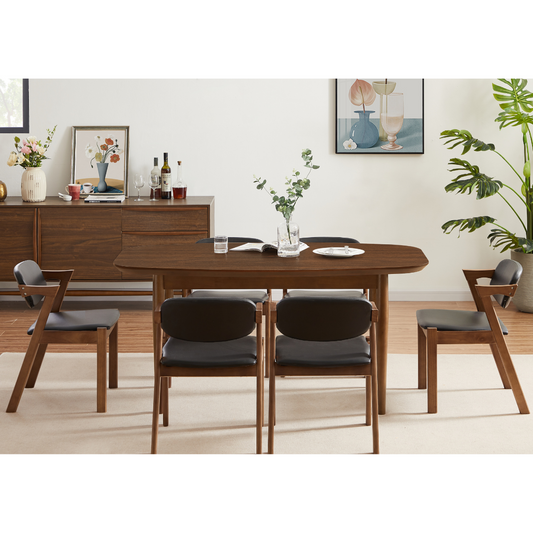 Begonia 7pc Dining Set 180cm Live Edge Table 6 Charcoal Fabric Chair Mango Wood