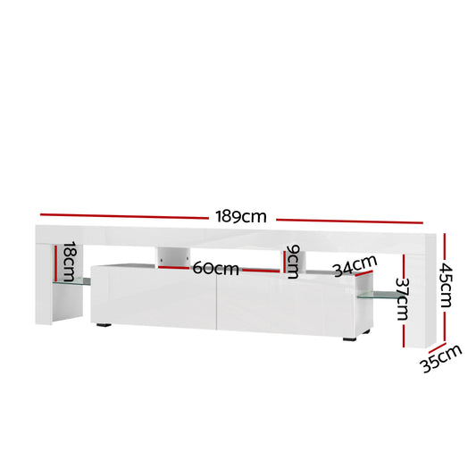Artiss 189cm RGB LED TV Stand Cabinet Entertainment Unit Gloss Furniture Drawers Tempered Glass Shelf White