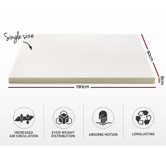 Giselle Bedding Memory Foam Mattress Topper w/Cover 8cm - Single