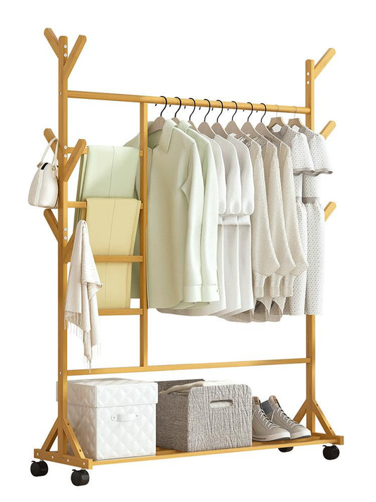 Portable Coat Stand Rack Rail Clothes Hat Garment Hanger Hook with Shelf Bamboo 9 Hook with Rack Rail Natural Finished