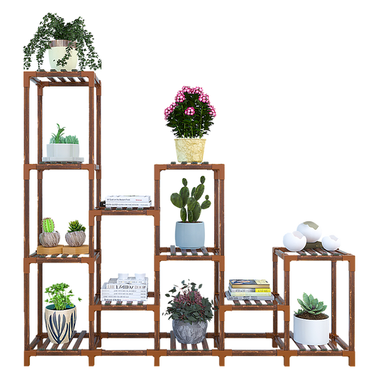 Indoor Outdoor Garden Plant Stand Planter Flower Pot Shelf Wooden Shelving - 12 Shelves