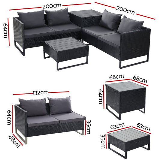 Gardeon Outdoor Sofa Furniture Garden Couch Lounge Set Wicker Table Chair Black