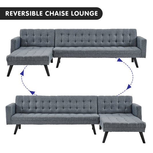 Sarantino 3-Seater Corner Wooden Sofa Bed Lounge Chaise Sofa Grey