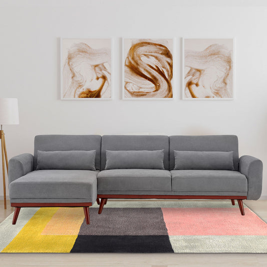 Sarantino Linen Corner Wooden Sofa Lounge L-shaped with Left Chaise Light Grey