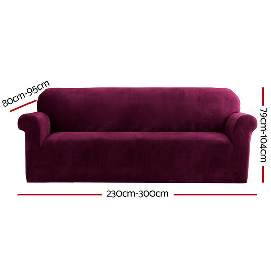 Artiss Velvet Sofa Cover Plush Couch Cover Lounge Slipcover 4 Seater Ruby Red