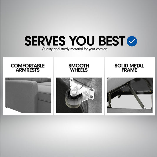 Sarantino 3 Seater Modular Linen Fabric Sofa Bed Couch Armrest Grey