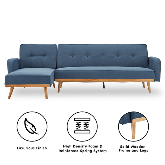 Sarantino 3-Seater Corner Sofa Bed with Chaise Lounge - Blue