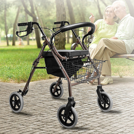 Rollator Walker Walking Frame With Wheels Zimmer Mobility Aids Seat Coffee