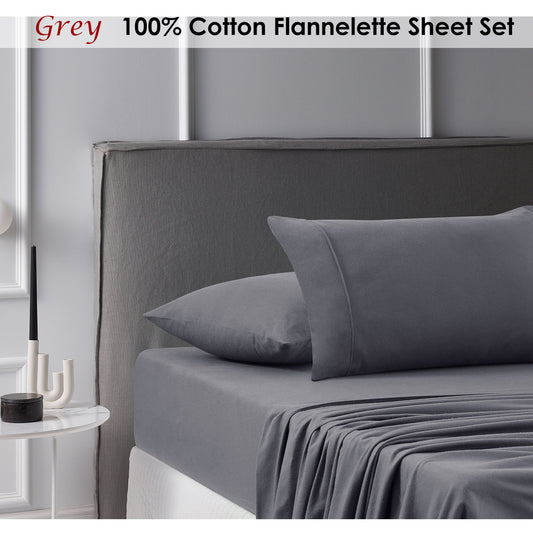 Accessorize Cotton Flannelette Sheet Set Grey Double