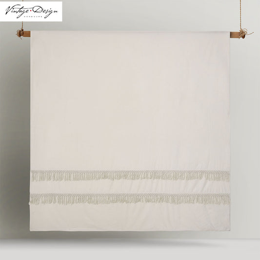 Vintage Design Homewares Boho Cream Cotton Tassel Quilt Cover Set Queen
