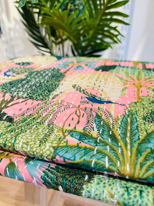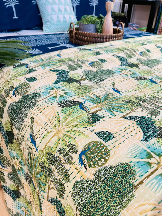 Cotton Kantha Quilt/Bedspread/Throw - Royal Jaipuri print Hand stitched Kantha