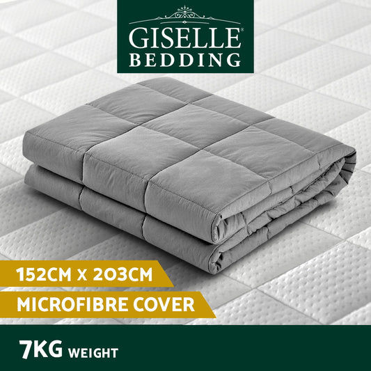 Giselle Bedding 7KG Microfibre Weighted Gravity Blanket Relaxing Calming Adult Light Grey