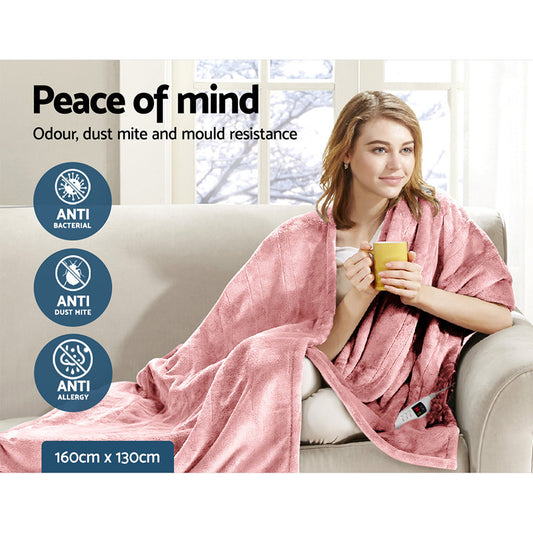 Giselle Bedding Heated Electric Throw Rug Fleece Sunggle Blanket Washable Pink